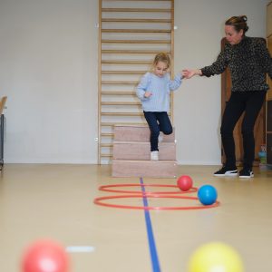 De behandeling zal erop gericht zijn de motorische en zintuiglijke ontwikkeling van het kind te stimuleren. De oefen-/ bewegingstherapie is daarom aangepast aan de ontwikkeling van het kind. De behandeling richt zich op het bewegend functioneren van het kind met zijn specifieke hulpvraag. Uitgaande van de hulpvraag worden de oefeningen en activiteiten spelenderwijs aangeboden die de motorische ontwikkeling stimuleert. Daarbij wordt het niveau aangepast aan het kunnen van uw kind en zijn belevingswereld. We maken gebruik van kindgericht oefenmateriaal, deze vergroten het plezier in het bewegen en spreken bepaalde motorische functies aan. We hebben de mogelijkheid om in een rustige prikkelarme ruimte de fijn motorische vaardigheden te oefenen en ook om te oefenen in een grote kinderoefenzaal voor de groot motorische vaardigheden.